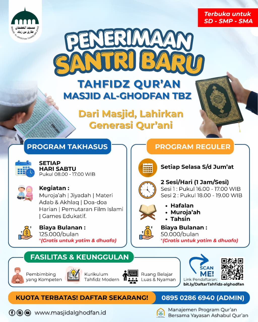 Link Pendaftaran: bit.ly/DaftarTahfidz-alghodfan Hubungi Admin: 0895 0286 6940